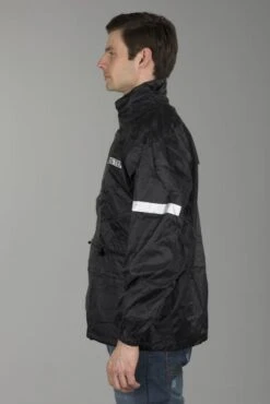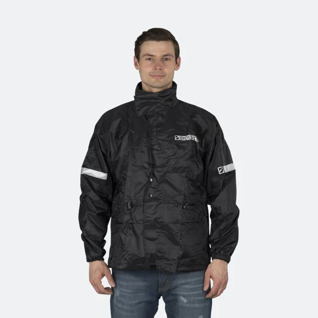 Una giacca parapioggia da Booster. Il materiale esterno è costituito da un materiale in poliestere rivestito in PVC impermeabile 100%. Equipaggiato con un interno a rete, una vita regolabile, 2 tasche esterne e materiale riflettente sulle maniche e sul davanti.