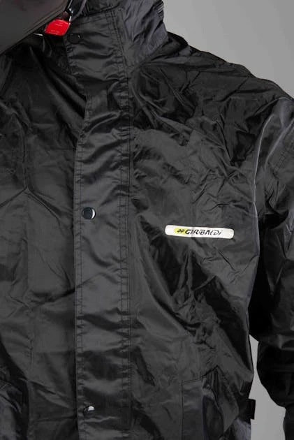 Garibaldi presenta una giacca antipioggia con cuciture saldate e zip. Ha dettagli riflettenti sulle maniche e nella parte superiore della schiena. È inoltre dotata di un cappuccio che può essere piegato o nascosto all’interno della giacca.