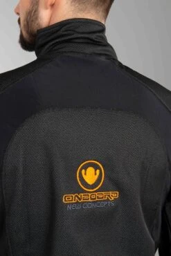 Maglia termica antivento di ON BOARD. Il maglia ha sezioni elastiche dove c’è bisogno di mobilità e materiale traspirante sotto le braccia dove è necessaria la ventilazione. Bella e utile quando inizia a fare freddo!