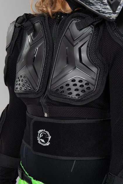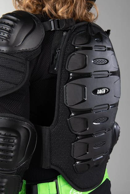 Pettorina protettiva leggero e flessibile con protezione per schiena, spalle e gomiti. Tutto ciò che serve per proteggere la parte superiore del corpo! Ben ventilata per una migliore temperatura del corpo.